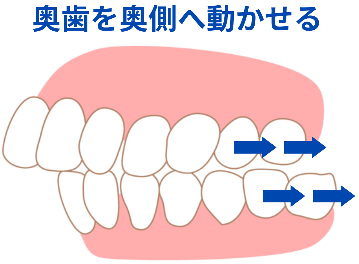 Smile TRUでは、親知らずを抜いたスペースに一番奥の歯を動かします。