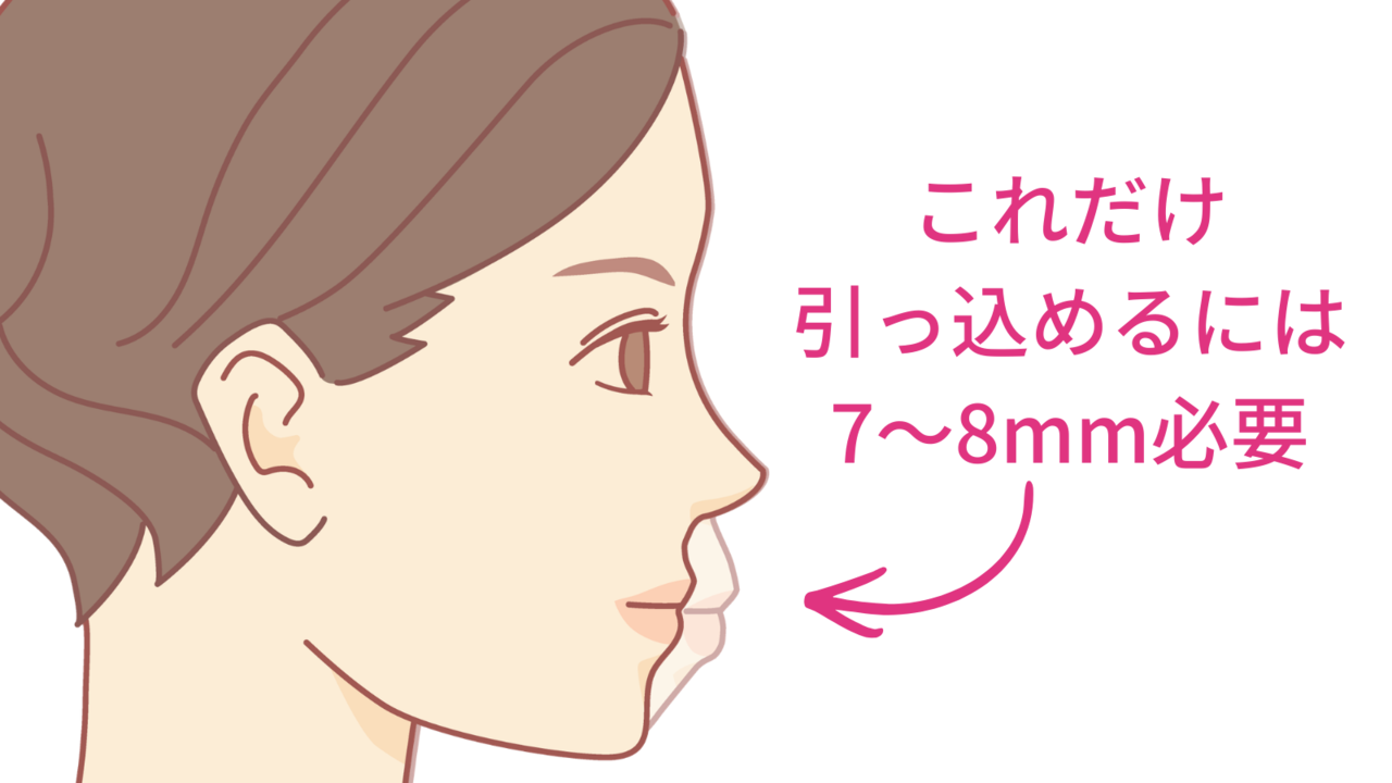 では、出っ歯を改善するにはどれくらい引っ込めればいいのか。横顔の変化を実感できるのは、最低でも前歯が4〜5mm引っ込んだとき。重度の出っ歯なら、7〜8mmは必要です。