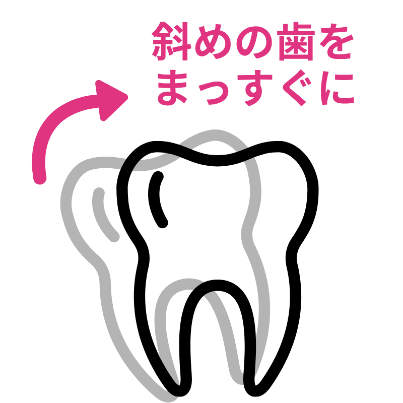 つまり斜めになった奥歯をまっすぐにして、さらに奥歯を奥側に移動して、前歯を並べるスペースを確保するのです。