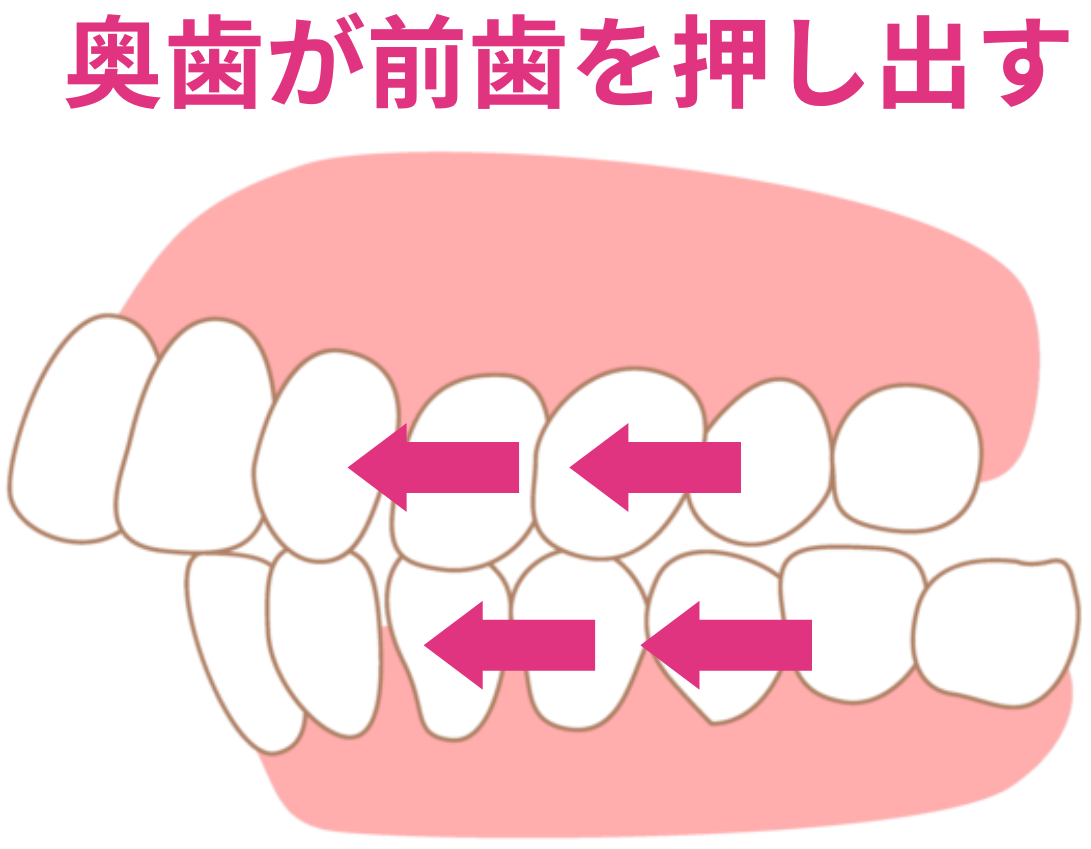 奥歯が斜めに傾いて前歯を押し出していると、前歯を引っ込めるスペースがありません。