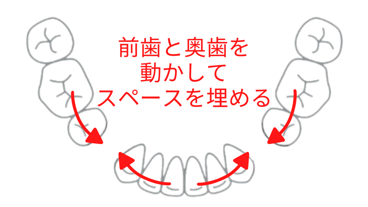 ただし、抜歯後のすき間を埋めるために、前歯だけでなく、奥歯も動かさなければいけません。