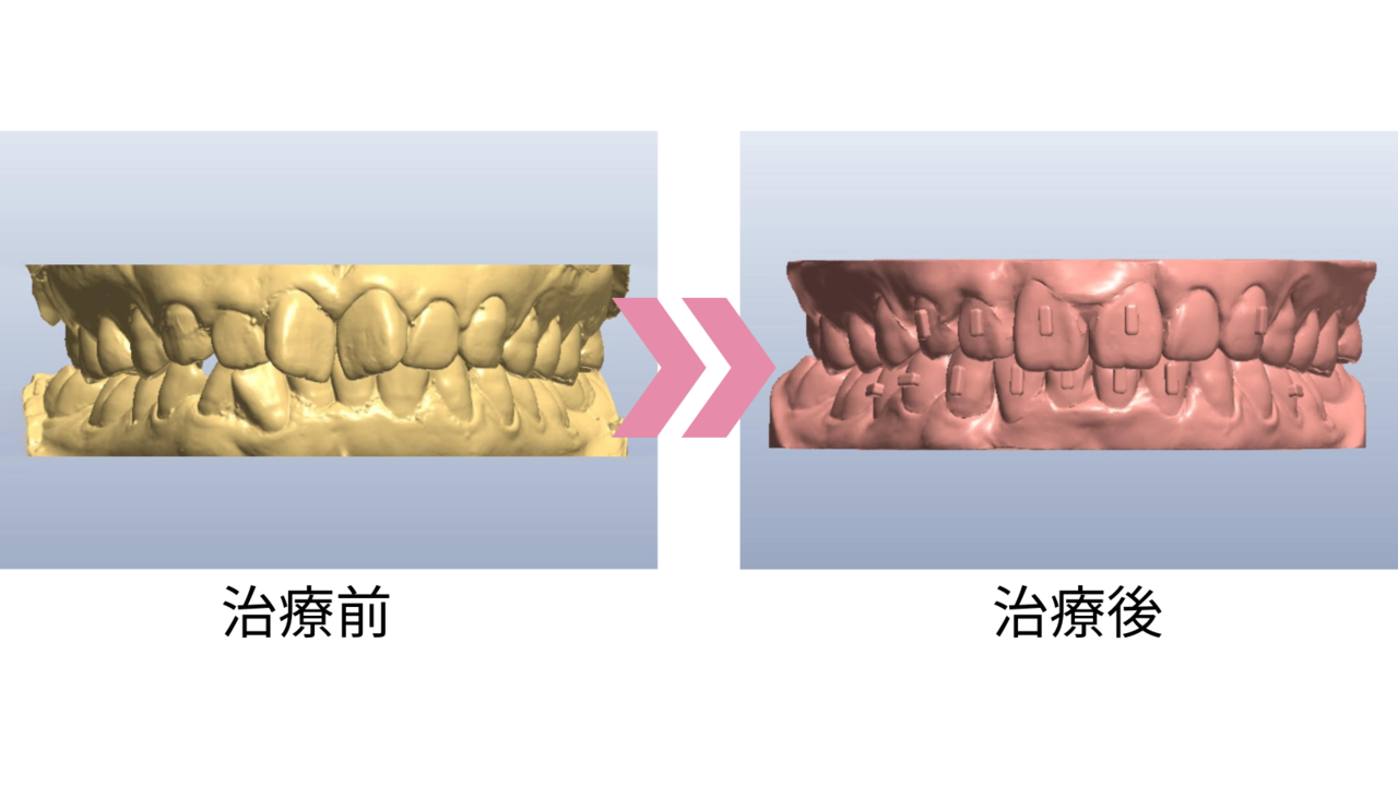 スキャンしたデータを元に歯並びがどのように変化するのか、治療後に歯並びがどれくらいきれいになるのかを画像でご覧いただきます。